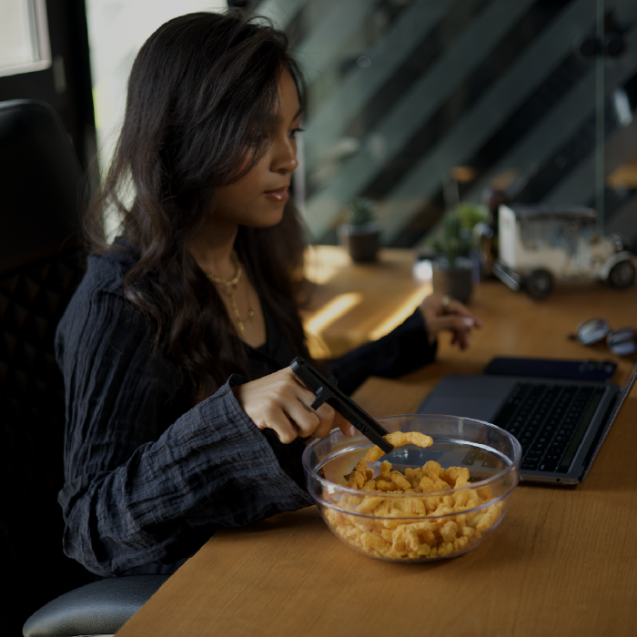 POV Snacky makes snacking while working easy, clean, and smart.